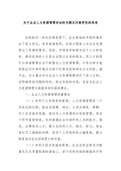 / 【七哥公文】2024年:关于企业人力资源管理存在的问题及对策研究的思考+更多免费公文+VX:QiGeGongWen2024