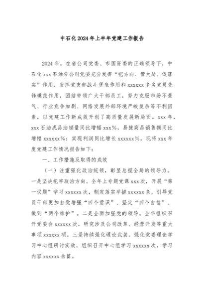 / 【七哥公文】2024年:中石化2024年上半年党建工作报告+更多免费公文+VX:QiGeGongWen2024