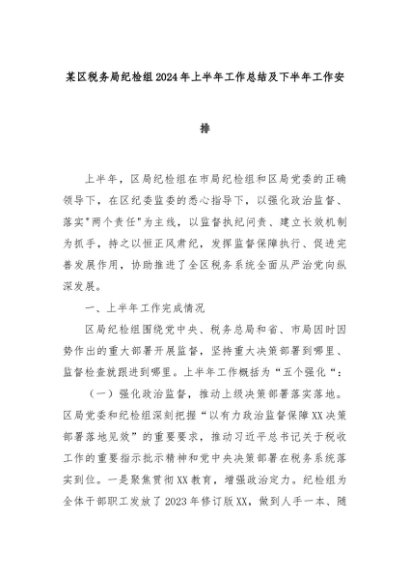 【七哥公文】2024年:某区税务局纪检组2024年上半年工作总结及下半年工作安排+更多免费公文+VX:QiGeGongWen2024