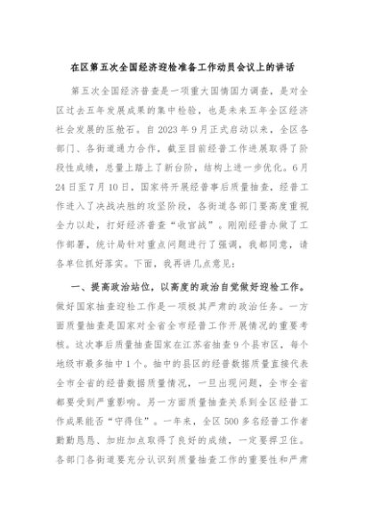 / 【七哥公文】2024年:在区第五次全国经济迎检准备工作动员会议上的讲话+更多免费公文+VX:QiGeGongWen2024