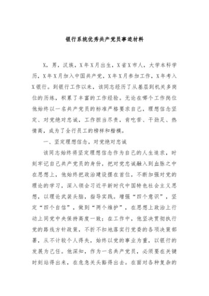 / 【七哥公文】2024年:银行系统优秀共产党员事迹材料+更多免费公文+VX:QiGeGongWen2024