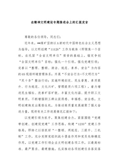 / 【七哥公文】2024年:在精神文明建设专题推进会上的汇报发言+更多免费公文+VX:QiGeGongWen2024