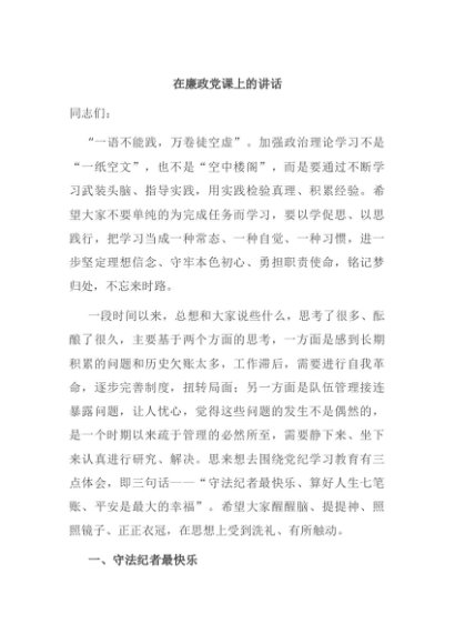 【七哥公文】2024年:在廉政党课上的讲话+更多免费公文+VX:QiGeGongWen2024