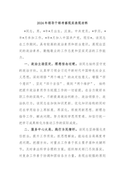 / 【七哥公文】2024年:2024年领导干部考察现实表现材料+更多免费公文+VX:QiGeGongWen2024