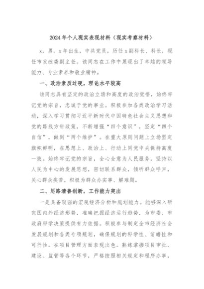 / 【七哥公文】2024年:2024年个人现实表现材料(现实考察材料)+更多免费公文+VX:QiGeGongWen2024
