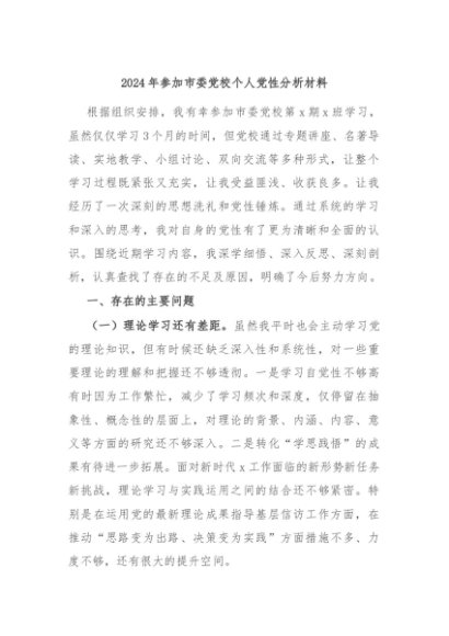 / 【七哥公文】2024年:2024年参加市委党校个人党性分析材料+更多免费公文+VX:QiGeGongWen2024