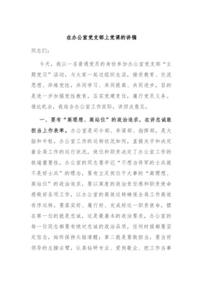 / 【七哥公文】2024年:在办公室党支部上党课的讲稿+更多免费公文+VX:QiGeGongWen2024
