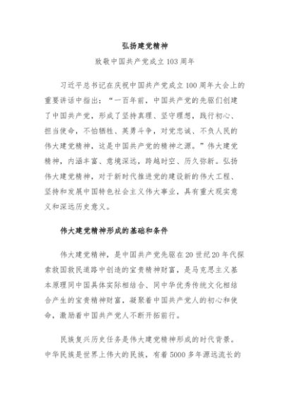 【七哥公文】2024年:2024致敬中国共 产 党成立103周年弘扬建党精神课件(讲稿)+更多免费公文+VX:QiGeGongWen2024