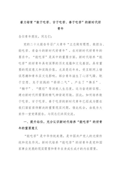 【七哥公文】2024年:着力培育“敢于吃苦、甘于吃苦、善于吃苦”的新时代好青年+更多免费公文+VX:QiGeGongWen2024
