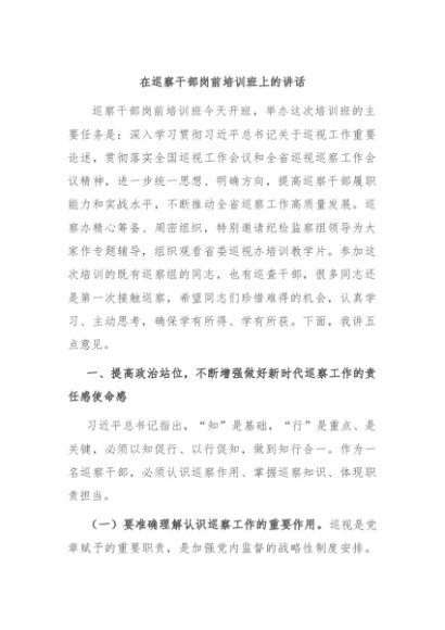 / 【七哥公文】2024年:在巡察干部岗前培训班上的讲话+更多免费公文+VX:QiGeGongWen2024