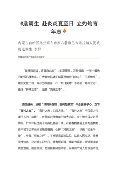 【七哥公文】2024年:选调生 赴炎炎夏至日 立灼灼青年志+更多免费公文+VX:QiGeGongWen2024