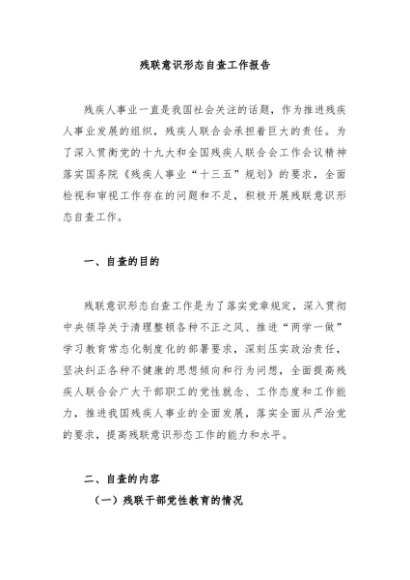 / 【七哥公文】2024年:残联意识形态自查工作报告+更多免费公文+VX:QiGeGongWen2024