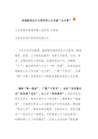 / 【七哥公文】2024年:发展新质生产力要写好人才这篇“大文章”+更多免费公文+VX:QiGeGongWen2024