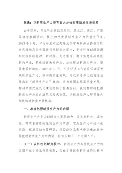 / 【七哥公文】2024年:党课:以新质生产力培育壮大加快构建新发发展格局+更多免费公文+VX:QiGeGongWen2024