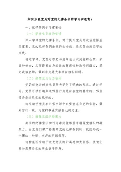 【七哥公文】2024年:关于如何加强党员对党的纪律条例的学习和教育党课讲稿+更多免费公文+VX:QiGeGongWen2024