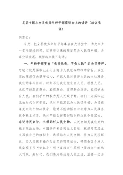 【七哥公文】2024年:县委书记在全县优秀年轻干部座谈会上的讲话(培训党课)+更多免费公文+VX:QiGeGongWen2024