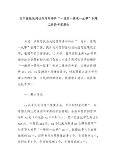【七哥公文】2024年:关于推进民间信仰活动场所“一场所一景观一故事”创建工作的考察报告+更多免费公文+VX:QiGeGongWen2024