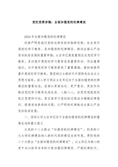 / 【七哥公文】2024年:党纪党课讲稿:全面加强党的纪律建设+更多免费公文+VX:QiGeGongWen2024