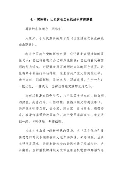 【七哥公文】2024年:七一演讲稿:让党旗在农牧战线中高高飘扬+更多免费公文+VX:QiGeGongWen2024