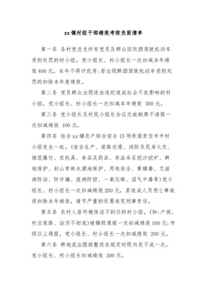 / 【七哥公文】2024年:xx镇村组干部绩效考核负面清单+更多免费公文+VX:QiGeGongWen2024