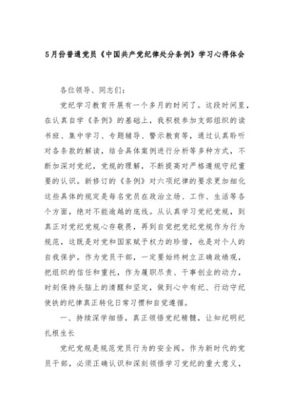 【七哥公文】2024年:5月份普通党员《中国共产党纪律处分条例》学习心得体会+更多免费公文+VX:QiGeGongWen2024