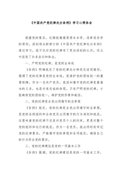 【七哥公文】2024年:《中国共产党纪律处分条例》学习心得体会(2)+更多免费公文+VX:QiGeGongWen2024