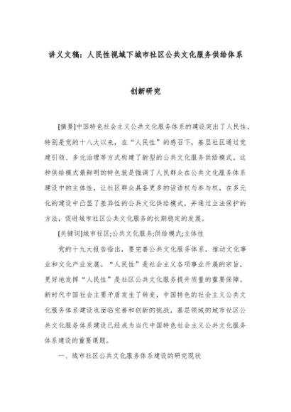 【七哥公文】2024年:讲义文稿:人民性视域下城市社区公共文化服务供给体系创新研究+更多免费公文+VX:QiGeGongWen2024