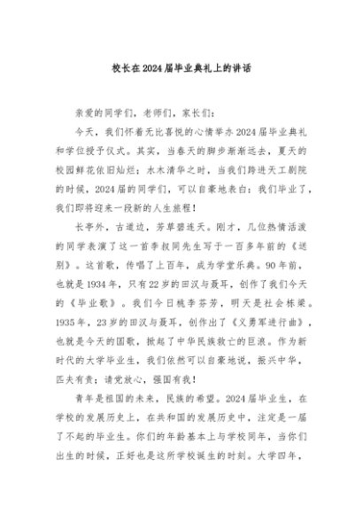 / 【七哥公文】2024年:校长在2024届毕业典礼上的讲话+更多免费公文+VX:QiGeGongWen2024