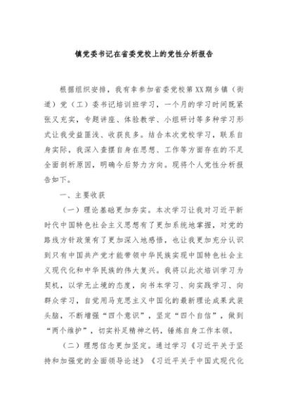 / 【七哥公文】2024年:镇党委书记在省委党校上的党性分析报告+更多免费公文+VX:QiGeGongWen2024