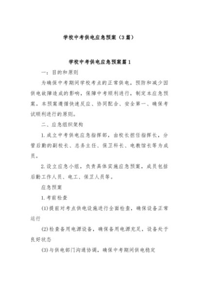 / 【七哥公文】2024年:(3篇)学校中考供电应急预案+更多免费公文+VX:QiGeGongWen2024