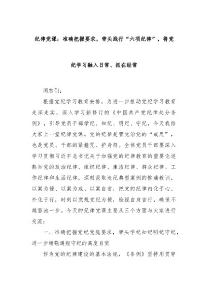【七哥公文】2024年:纪律党课:准确把握要求,带头践行“六项纪律”,将党纪学习融入日常、抓在经常+更多免费公文+VX:QiGeGongWen2024