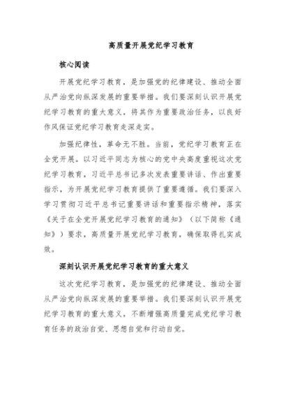 / 【七哥公文】2024年:2024年开展高质量党纪学习教育(讲稿)+更多免费公文+VX:QiGeGongWen2024