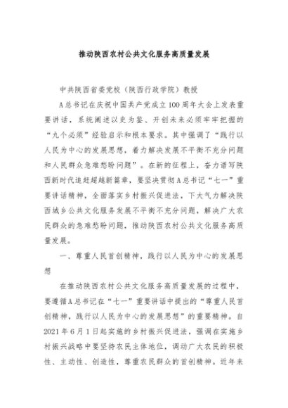 【七哥公文】2024年:推动陕西农村公共文化服务高质量发展+更多免费公文+VX:QiGeGongWen2024