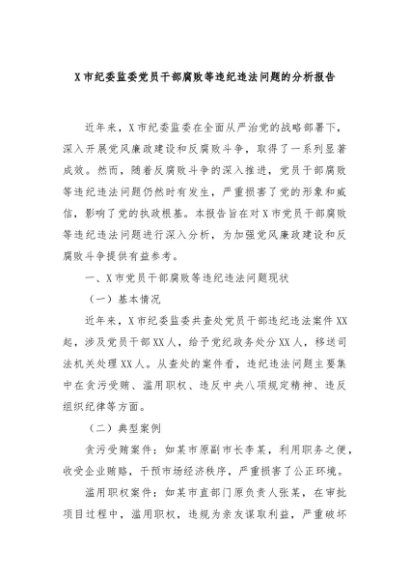 / 【七哥公文】2024年:X市纪委监委党员干部腐败等违纪违法问题的分析报告+更多免费公文+VX:QiGeGongWen2024