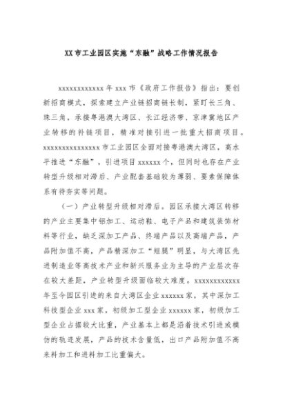 / 【七哥公文】2024年:XX市工业园区实施“东融”战略工作情况报告+更多免费公文+VX:QiGeGongWen2024