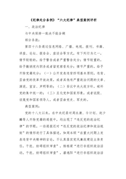 【七哥公文】2024年:《纪律处分条例》“六大纪律”典型案例评析+更多免费公文+VX:QiGeGongWen2024