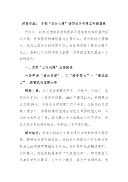【七哥公文】2024年:经验交流: 支部“三向共建”谱写机关党建工作新篇章+更多免费公文+VX:QiGeGongWen2024