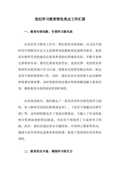 / 【七哥公文】2024年:党纪学习教育特色亮点工作汇报+更多免费公文+VX:QiGeGongWen2024