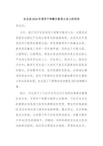 / 【七哥公文】2024年:在全县2024年领导干部警示教育大会上的讲话+更多免费公文+VX:QiGeGongWen2024