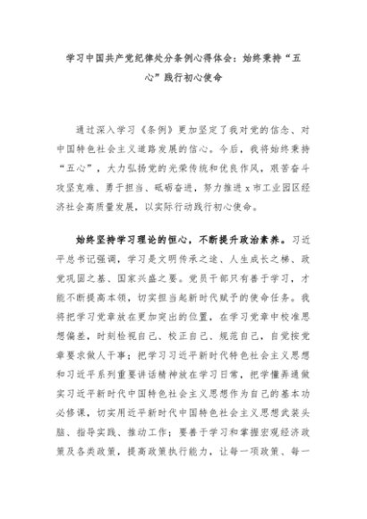 【七哥公文】2024年:学习中国共产党纪律处分条例心得体会:始终秉持“五心”践行初心使命+更多免费公文+VX:QiGeGongWen2024