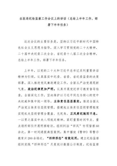 【七哥公文】2024年:在驻局纪检监察工作会议上的讲话(总结上半年工作,部署下半年任务)+更多免费公文+VX:QiGeGongWen2024
