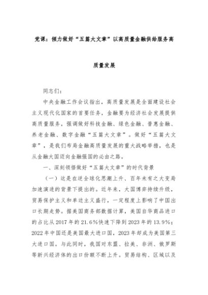 【七哥公文】2024年:党课:倾力做好“五篇大文章”以高质量金融供给服务高质量发展+更多免费公文+VX:QiGeGongWen2024