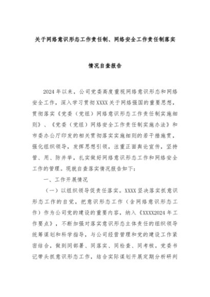 【七哥公文】2024年:关于网络意识形态工作责任制、网络安全工作责任制落实情况自查报告+更多免费公文+VX:QiGeGongWen2024