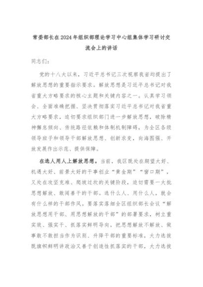 【七哥公文】2024年:常委部长在2024年组织部理论学习中心组集体学习研讨交流会上的讲话+更多免费公文+VX:QiGeGongWen2024