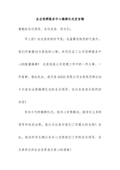 / 【七哥公文】2024年:企业党群服务中心揭牌仪式发言稿+更多免费公文+VX:QiGeGongWen2024