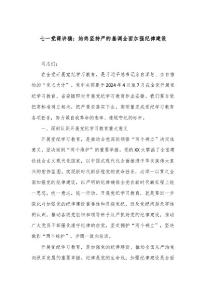 / 【七哥公文】2024年:七一党课讲稿:始终坚持严的基调全面加强纪律建设+更多免费公文+VX:QiGeGongWen2024