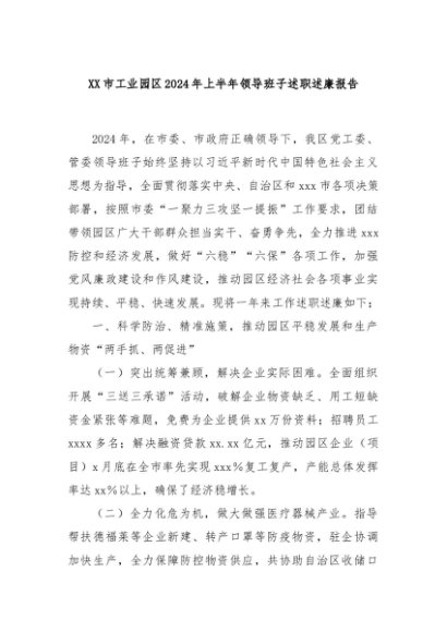 【七哥公文】2024年:XX市工业园区2024年上半年领导班子述职述廉报告+更多免费公文+VX:QiGeGongWen2024