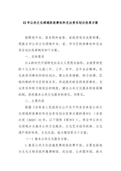 / 【七哥公文】2024年:XX市公共文化领域财政事权和支出责任划分改革方案+更多免费公文+VX:QiGeGongWen2024