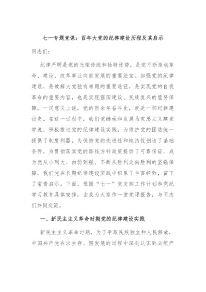 【七哥公文】2024年:七一专题党课:百年大党的纪律建设历程及其启示+更多免费公文+VX:QiGeGongWen2024