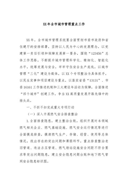 / 【七哥公文】2024年:XX年全市城市管理重点工作+更多免费公文+VX:QiGeGongWen2024